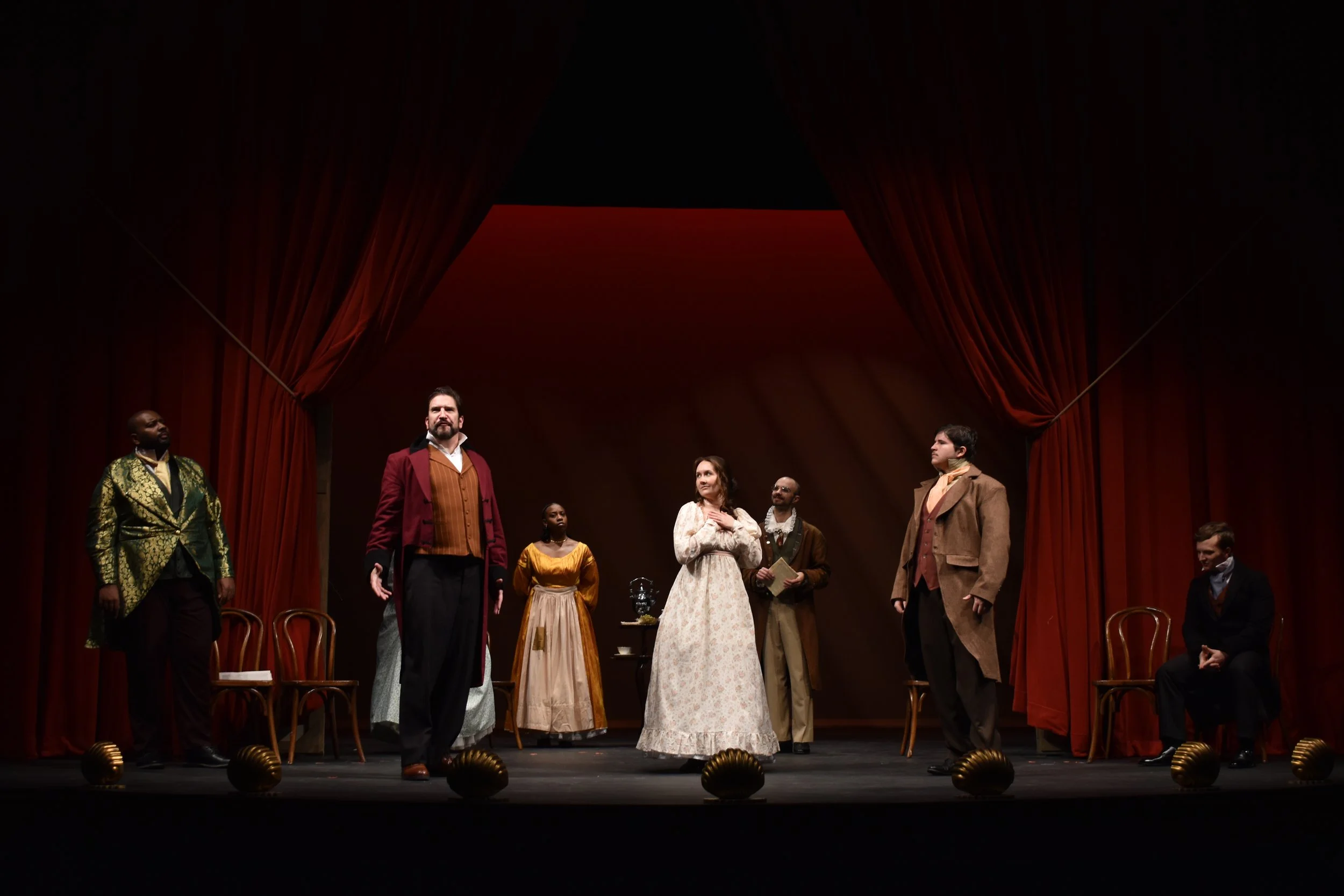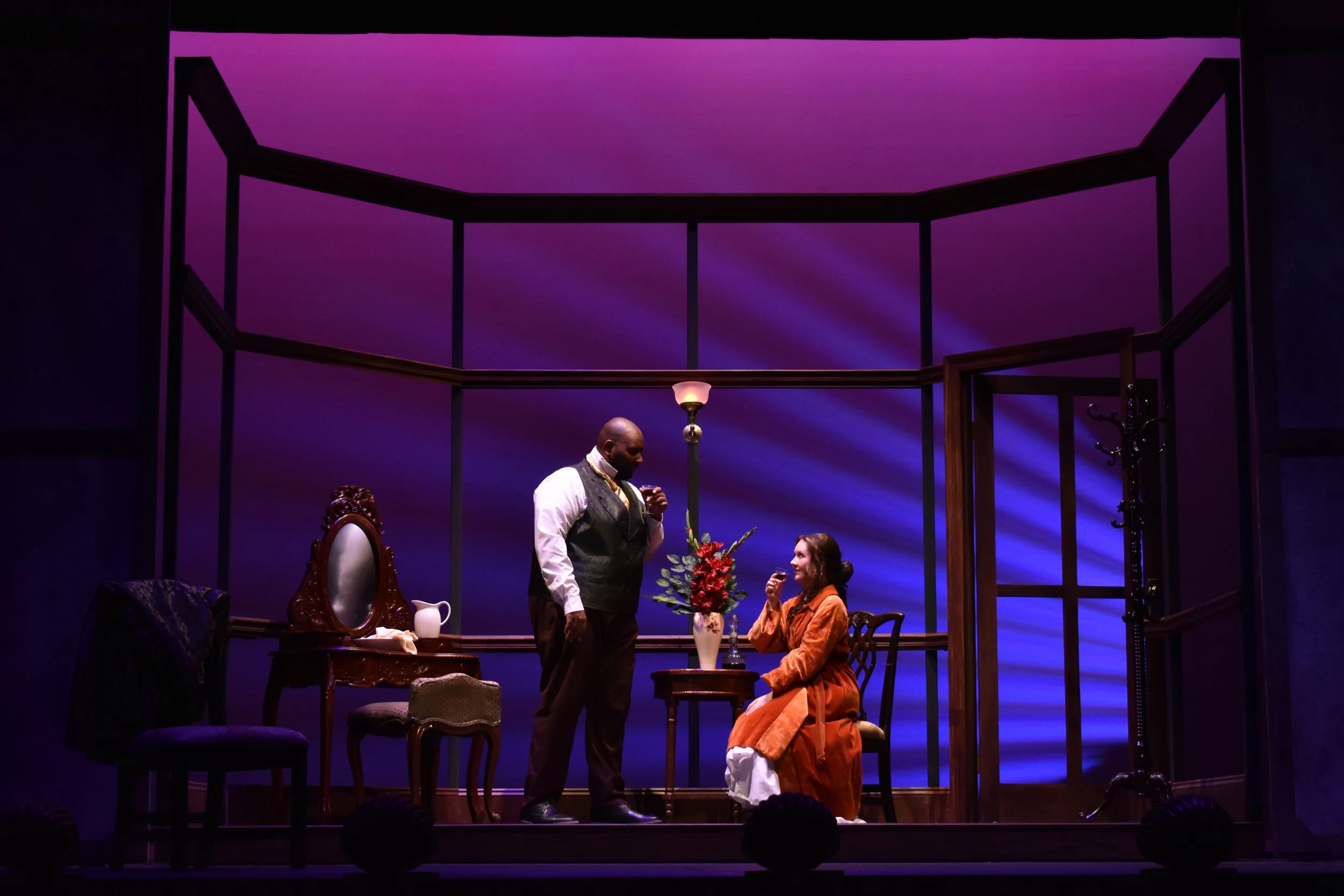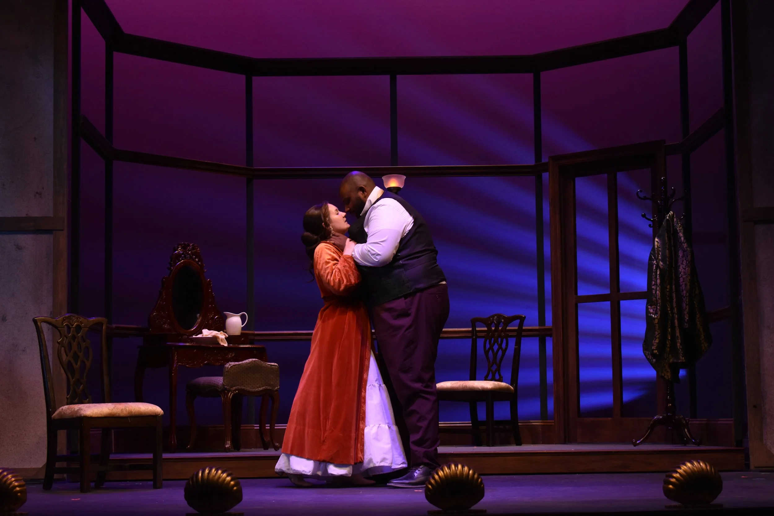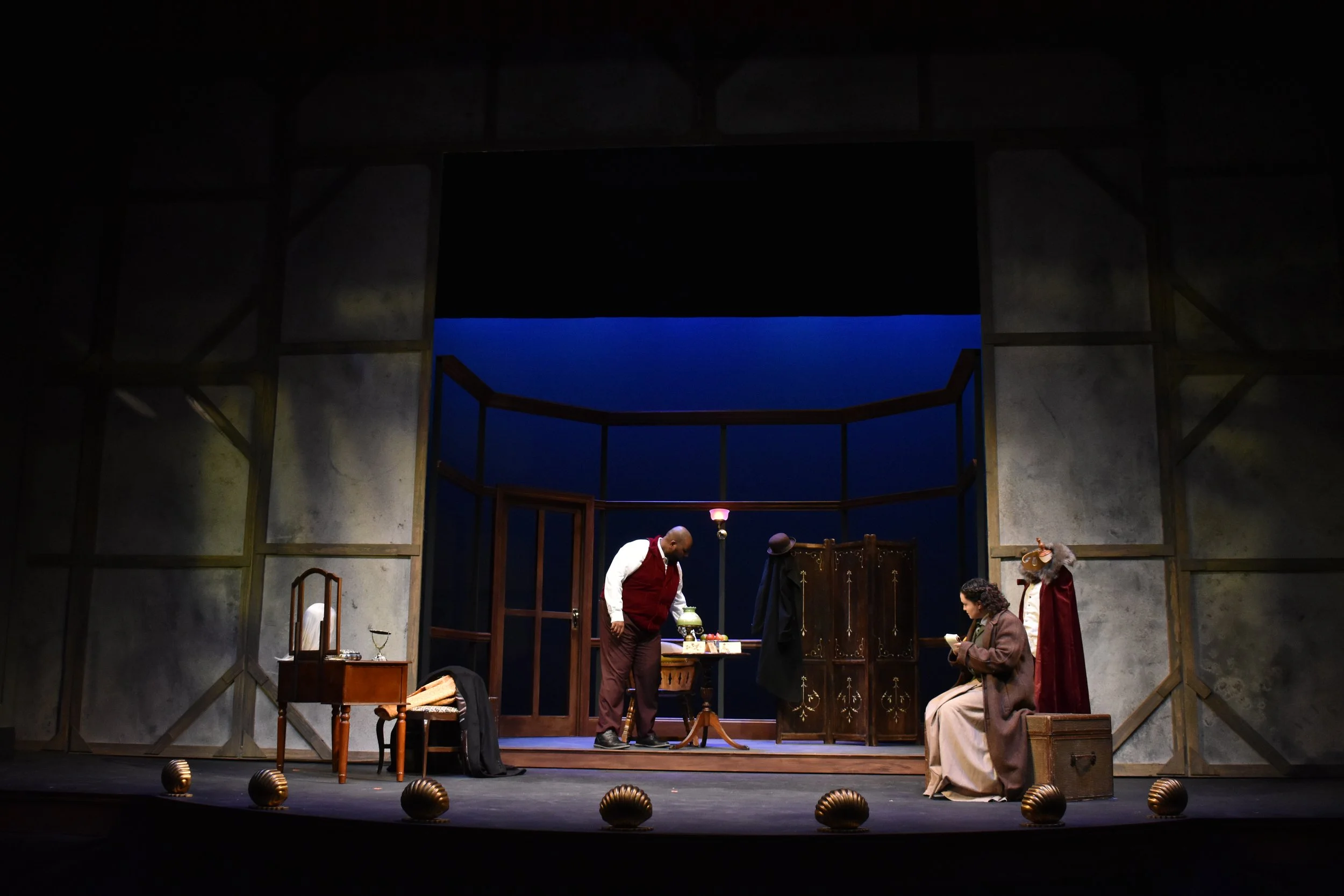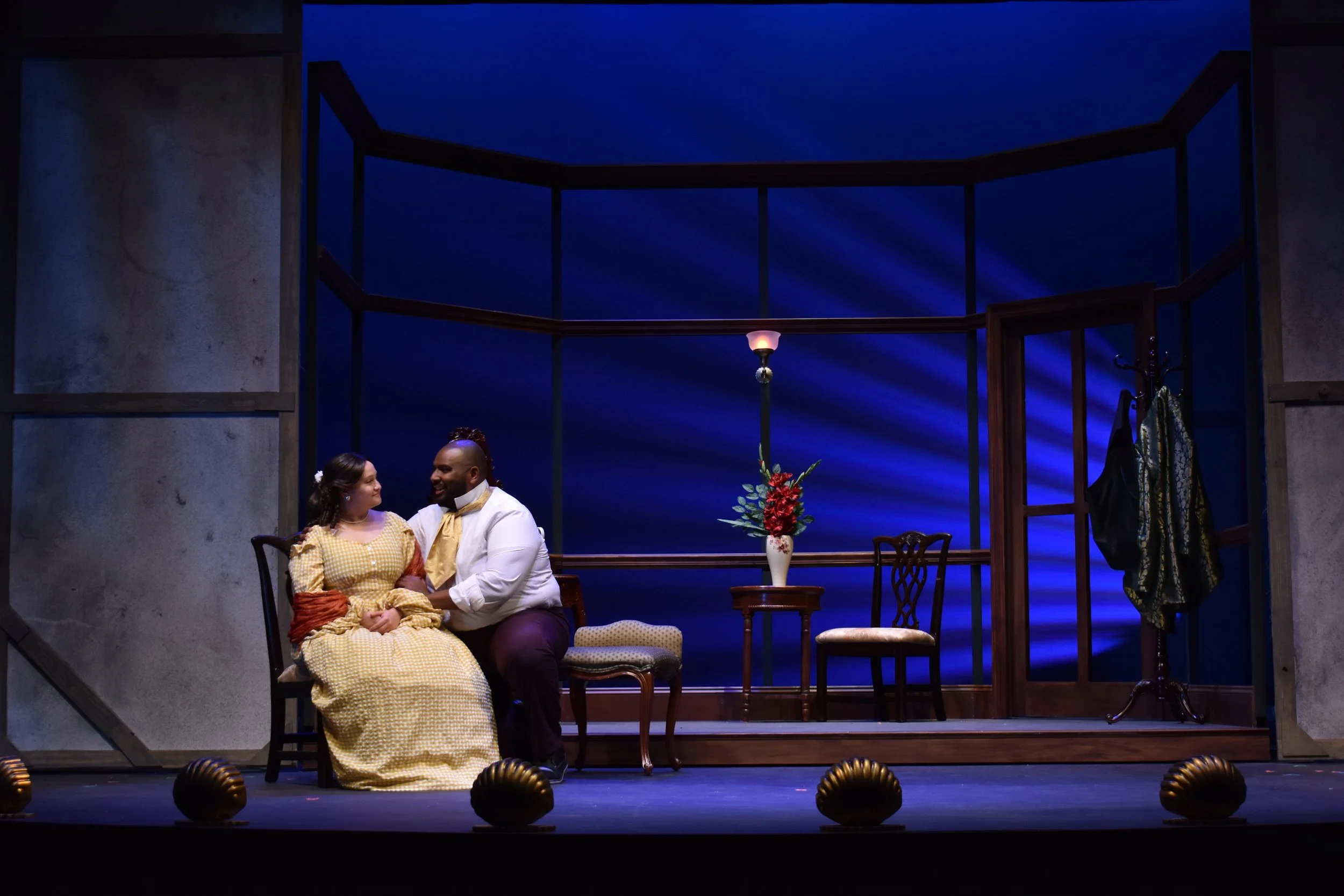 My last project at LSU was assisting the scenic designer, Apollo Weaver, with the designs. My role in the process involved doing my own research on the era/play, creating paint elevations, presenting at the designer meeting, and executing the paint treatments. My inspiration and ideas in the color story drew from what our costume designer, Amara Copeland, presented. I wanted to complement her ideas to tell a cohesive story. The biggest challenge with this show was keeping up with deadlines as we lost a work week do to inclement weather, but we were able to effectively adapt.